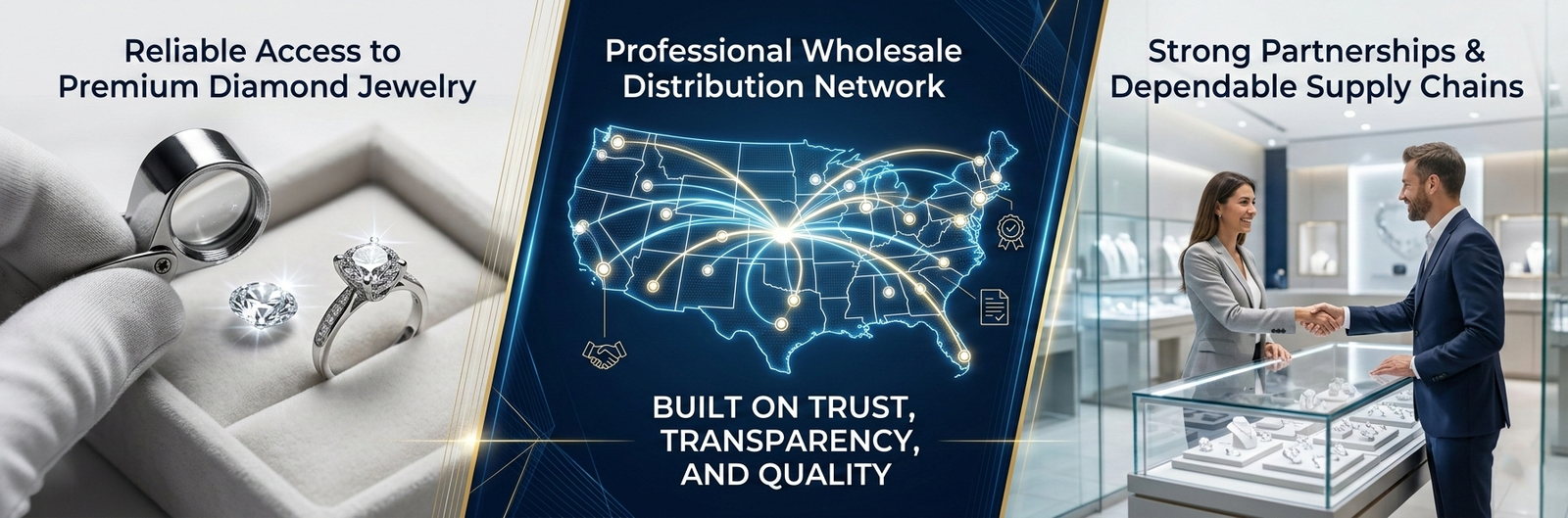 Our mission is to provide U.S. jewelry retailers with reliable access to premium diamond jewelry through a professional wholesale distribution network built on trust, transparency, and quality.
